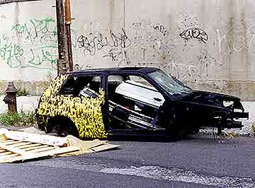 Vehicle moved across street, first week of October.