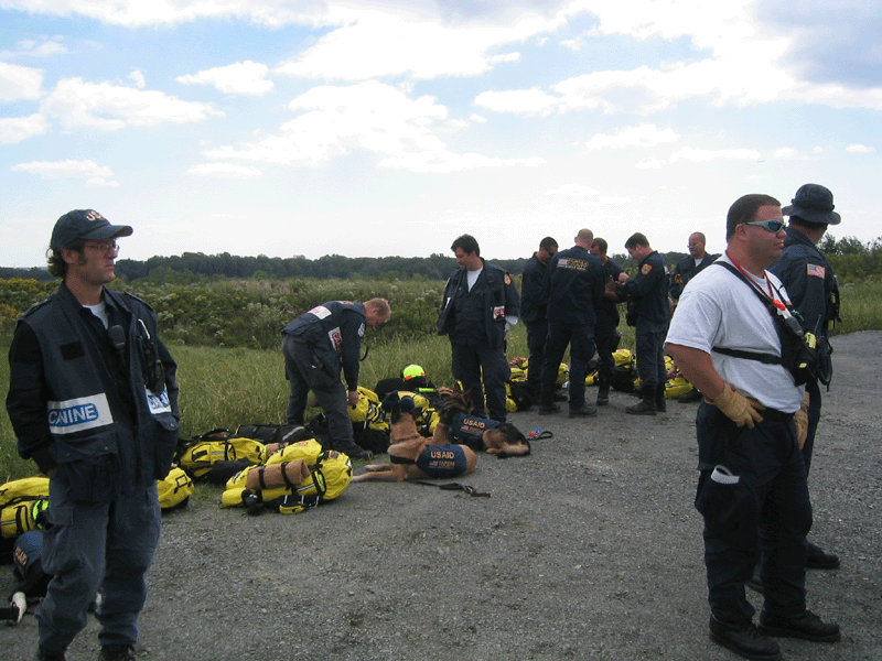 | Canine Sheridan getting fitted for harness | Canine indicating on a "high" find | |