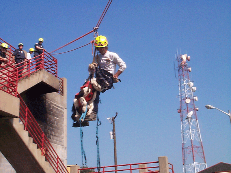 | Handler Holleyman and canine Sheridan on high line |