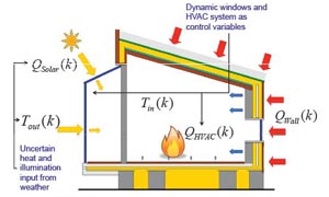 The control system for the house manages windows and the hybrid solar and high efficiency pellet burner HVAC system to regulate thermal comfort. It uses real-time data from multiple internal temperature and humidity sensors, occupancy sensors and an exterior weather station. This live data is combined with historical weather data and both explicitly inputted and inferred user preferences